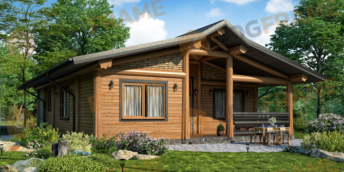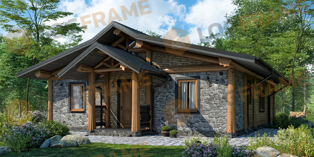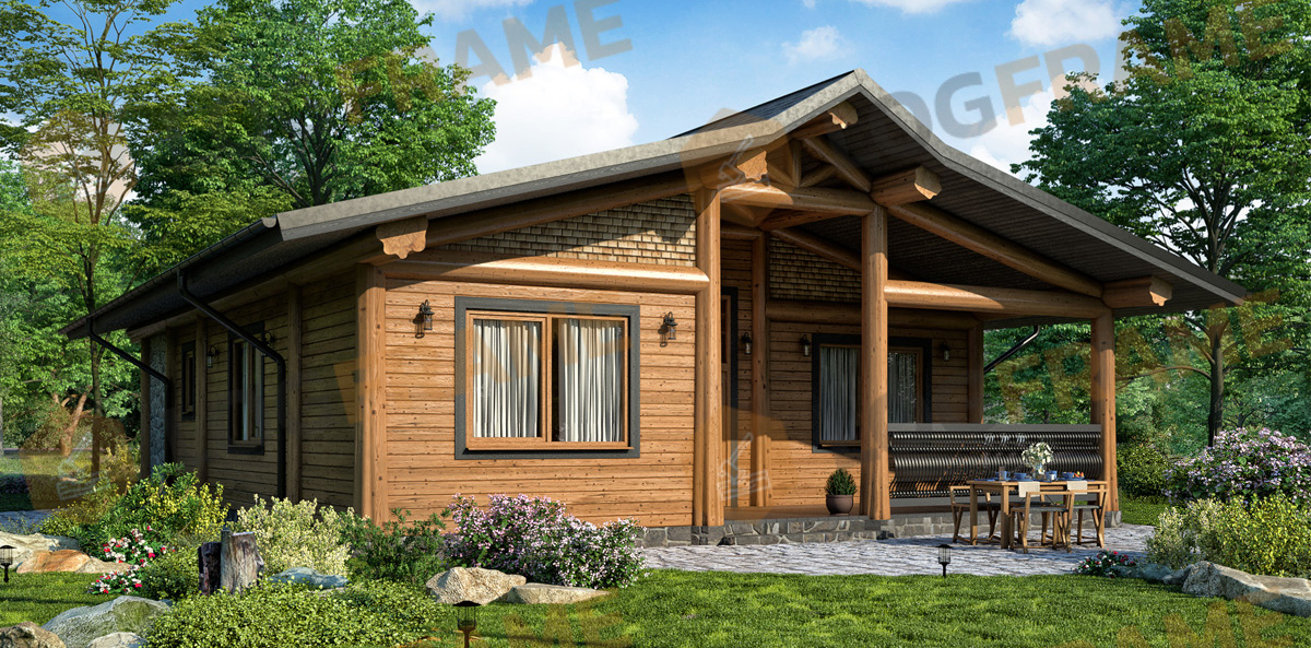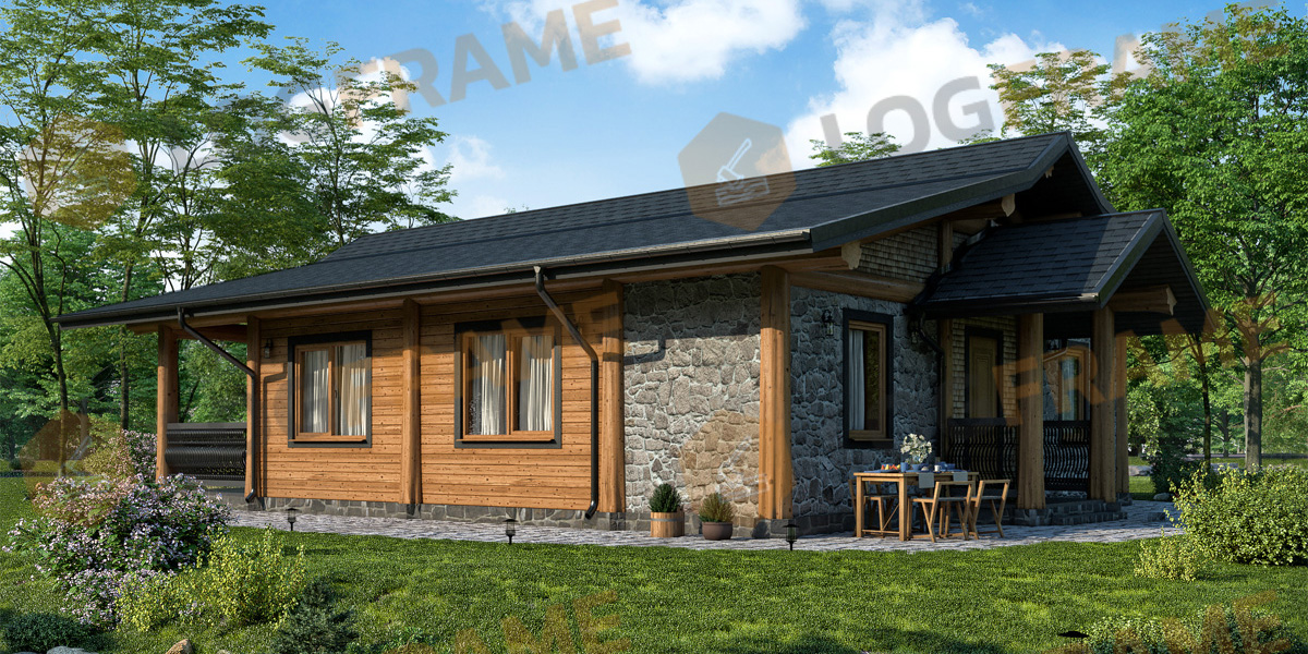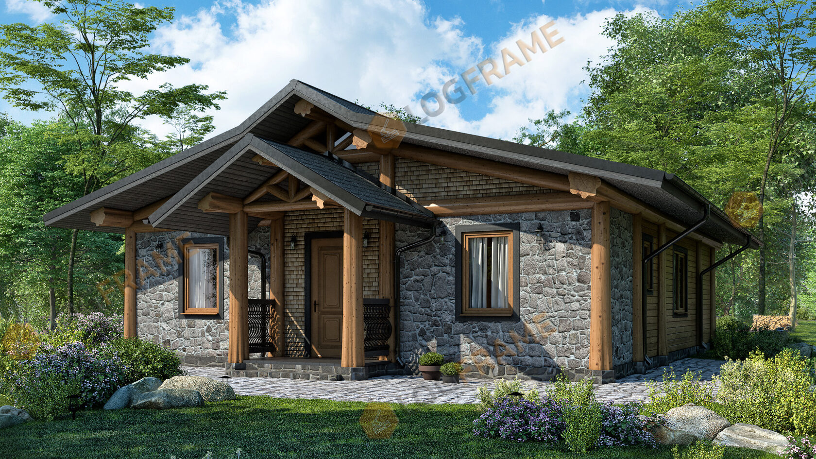 Архитектура простая, вместе с тем изящная. Сочетание натурального камня и 100% массива дерева - делает дом максимально экологичным, а технология LogFrame + Massiv-Holz-Mauer - тёплым.